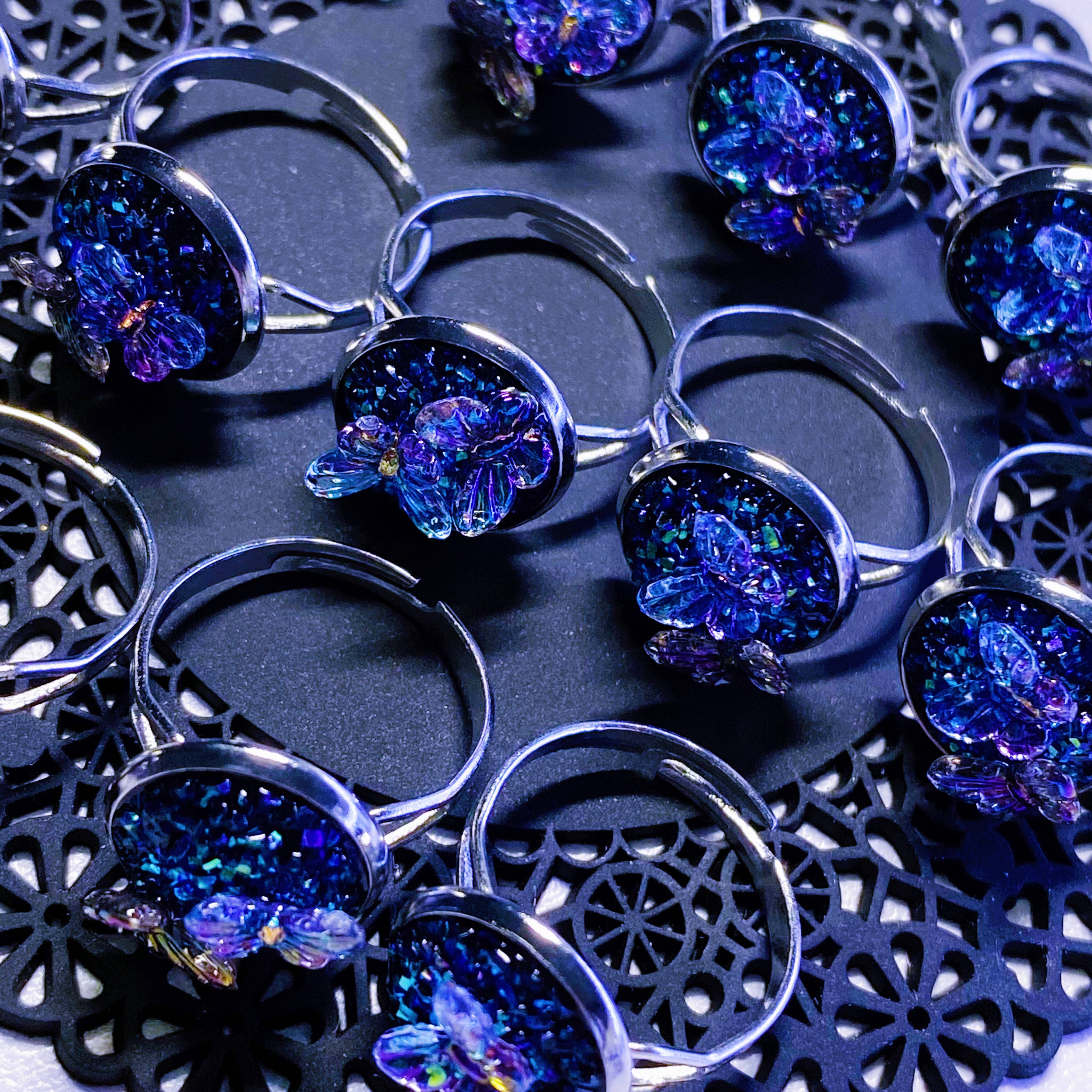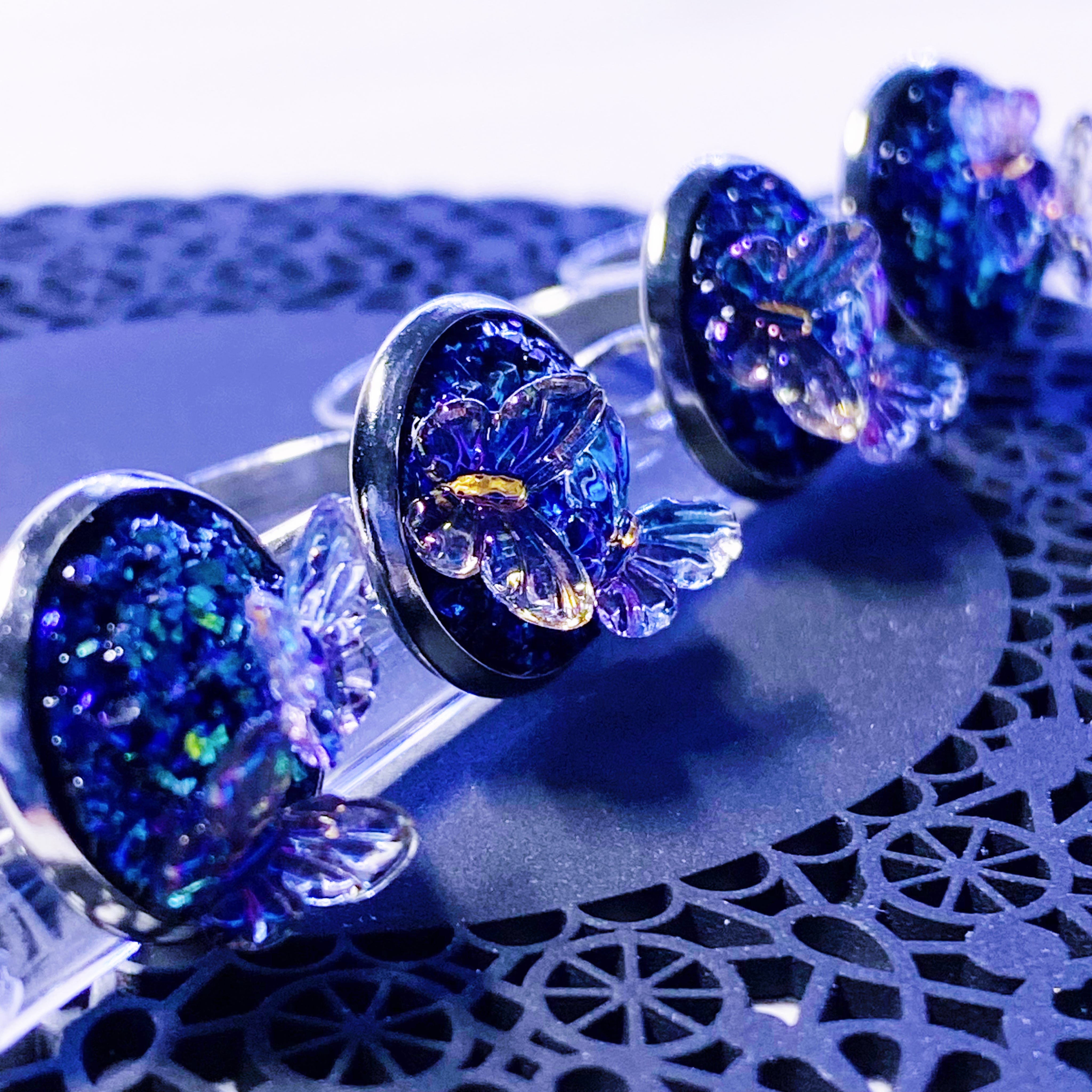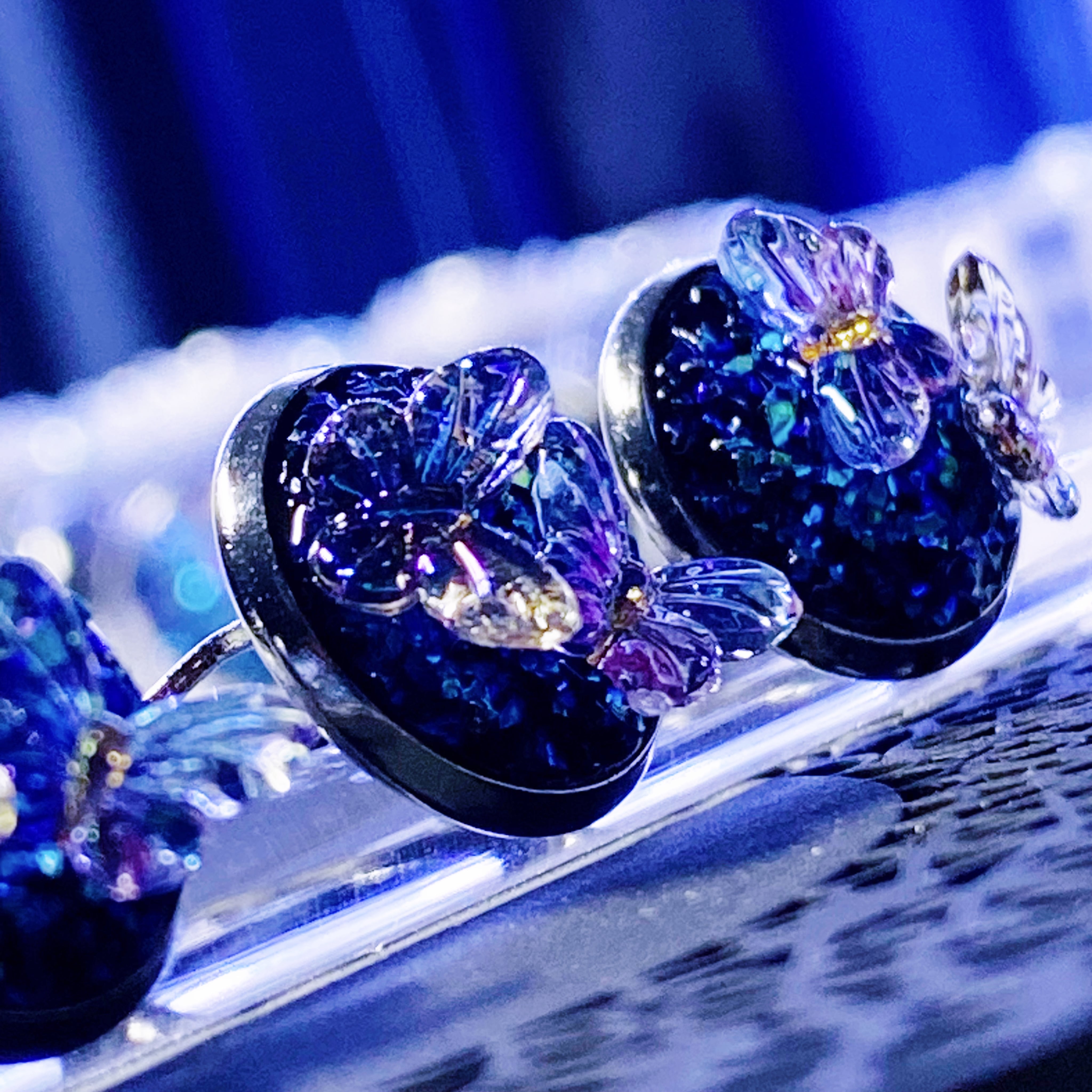 鉱石部分と蝶の色合いが変化し